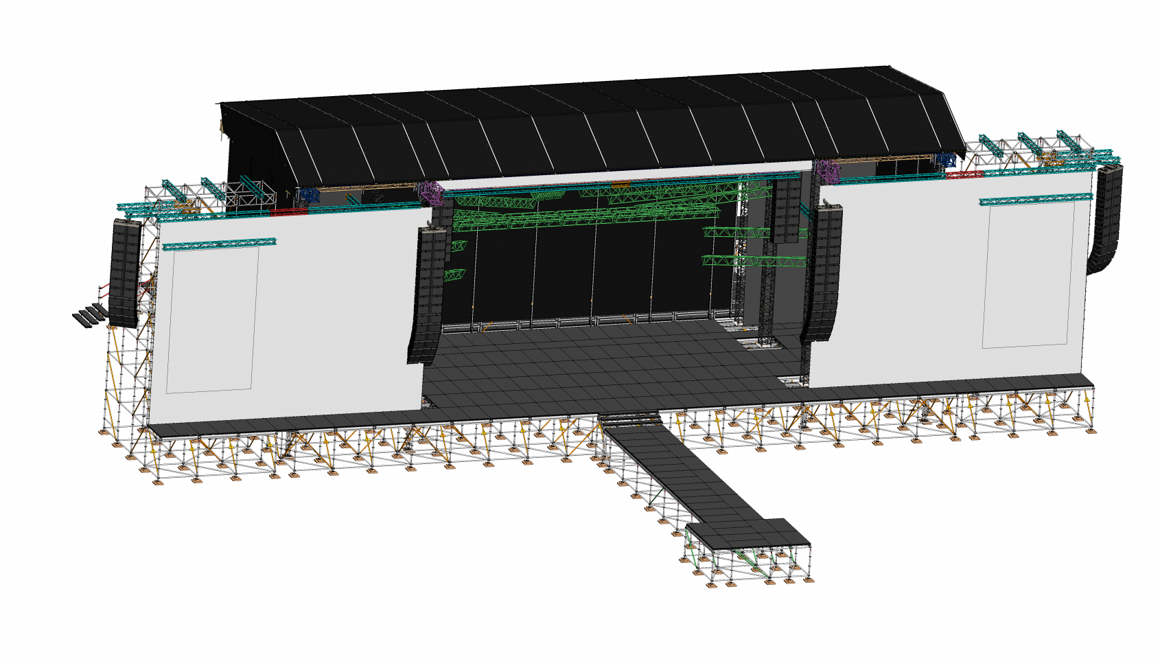 - Plans d’accroche et rigging : Conception des points d’accroche et dimensionnement des moteurs de levage.
